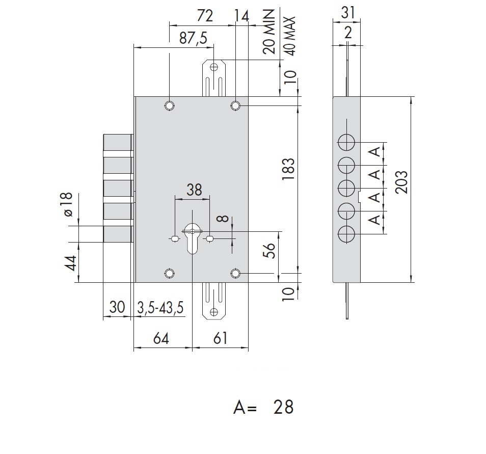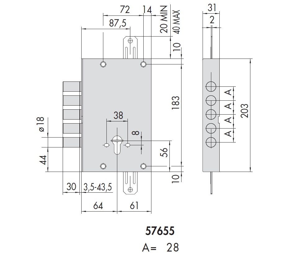 CISA 1.57505.48.0.C5 Замок врезной сувальдный без защёлки, 5 ключей