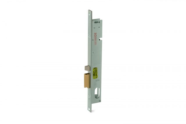Замок имеет только электрически управляемую защелку: взводной и запорный ригели. Запорная защелка имеет противоотжимный блокировочный механизм при закрытом состоянии замка. Цилиндровый механизм овальной формы позволяет механически открывать замок.