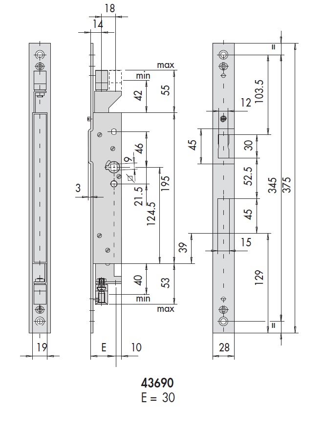 Для второстепенной створки двухстворчатых дверей На главную створку устанавливается замок серии 43650, 43660, 43661, 43662 РЕЖИМ РАБОТЫ: Внутри: ручкой с устройством "антипаника"