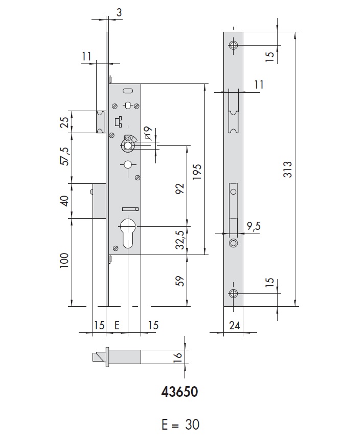 Для вдухстворчатых дверей - на второй створке устанавливается второй замок серии 43690 - ригель и защелка ФУНКЦИЯ ТИПА А * Внутренняя сторона двери: - ручка-штанга "антипаника" для открывания - ключ, запирающий ригель * Внутренняя сторона двери: -ключ, приводящий в действие защелку и ригель