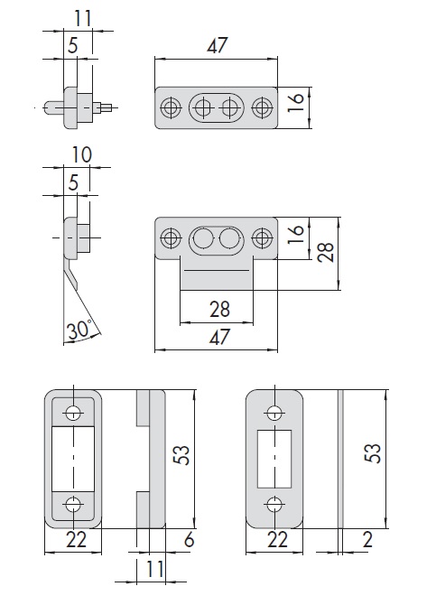 Назначение 1) Передача сигналов управления электрозамком, установленном в любом типе дверей: деревянных, алюминиевых и металлических. Помимо подвода питания к замку 2) Передача пар электрических сигналов через различные движущиеся поверхности, с помощью набора пластиковых контактов. 3) Снятие сигнала управления после открывания двери, предохраняя замок от длительной подачи напряжения. Внешний вид Контакты представляют собой пластиковый корпус с встроенными контактными соединителями. Одна часть содержит неподвижную пару контактов. Ответная часть содержит подвижные подпружиненые контакты. Подсоединение провода ко всем контактом под винт, что гарантирует прочное соединение. Для более простой и точной установки контактов служат дополнительные пластиковые пластины, позволяющие осуществлять подгонку в зависимости от условий установки.